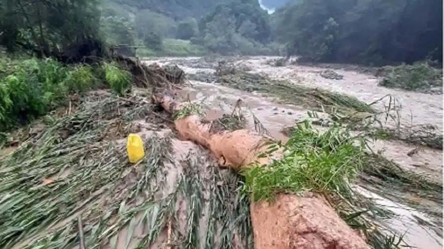 La fuerza del agua ocasionó el arrastre de abundante vegetación y árboles de gran tamaño, además de generar daños en terrenos de cultivo, principalmente de mango, limón y otros sembríos, cuyas pérdidas aún se encuentran en proceso de cuantificación.